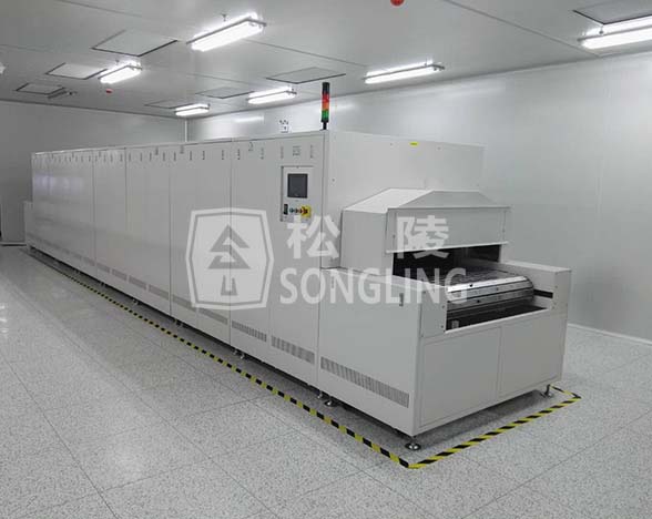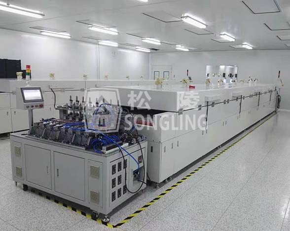 該產(chǎn)品主要用于LED支架除濕烘烤,取代傳統(tǒng)的單體烘烤箱模式,進出料口對接上下工序自動物流線,極大的提供了生產(chǎn)效率,人員配置也大幅降低。